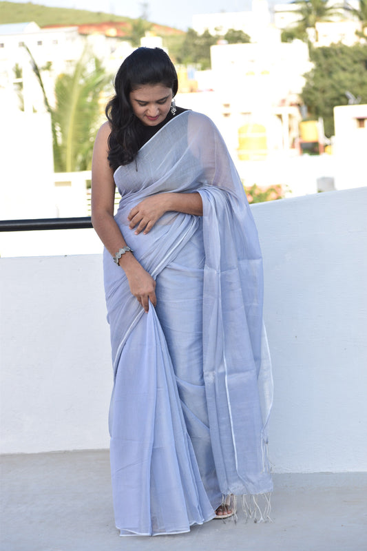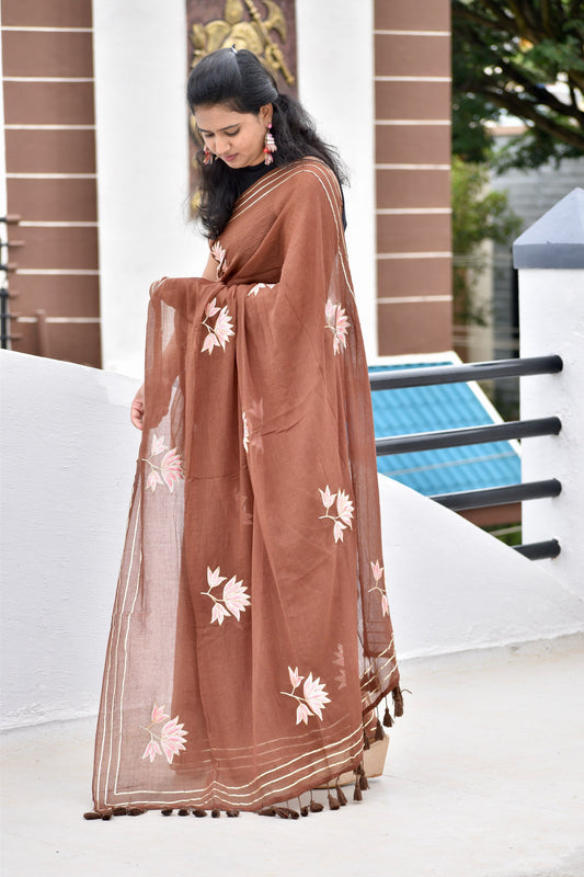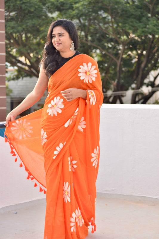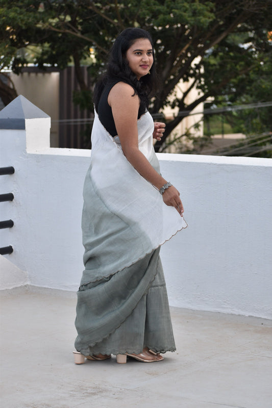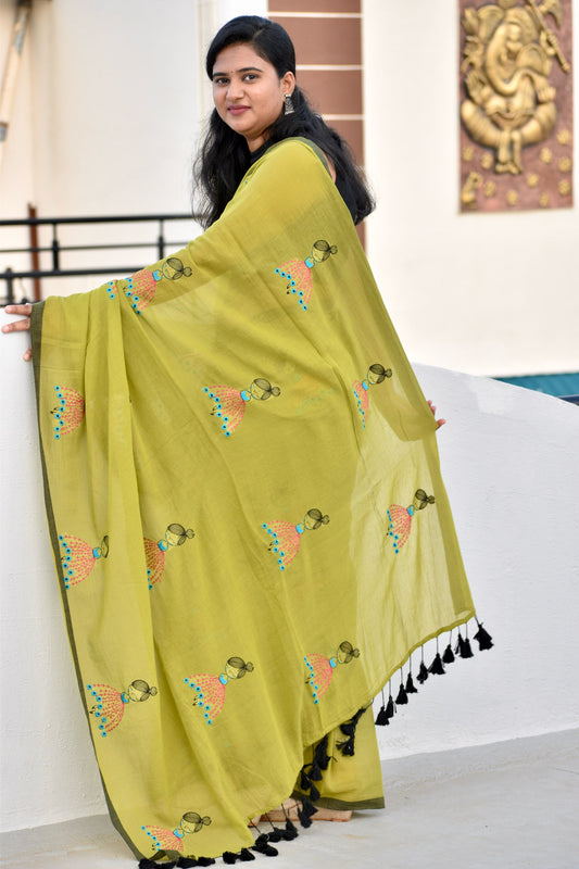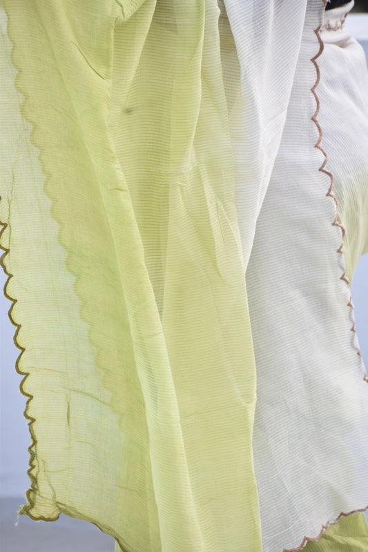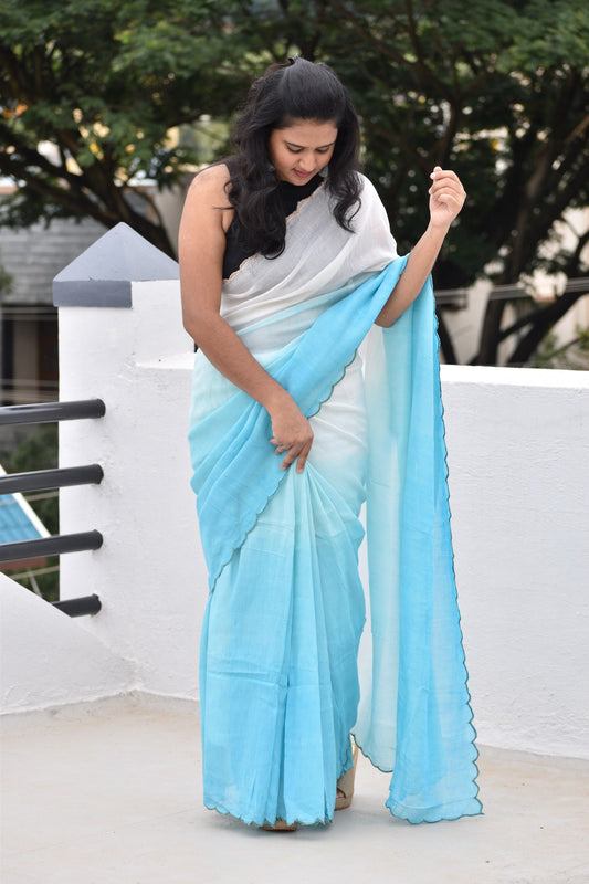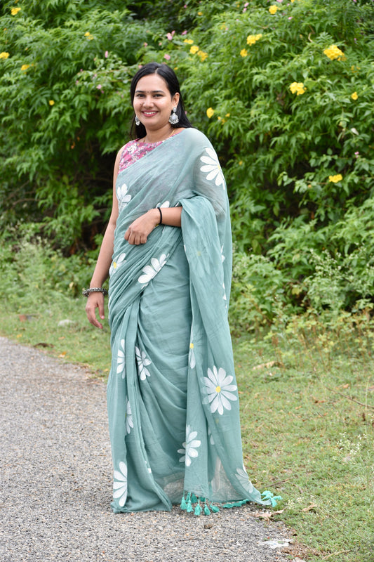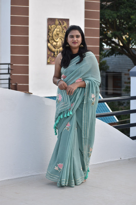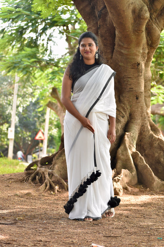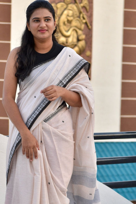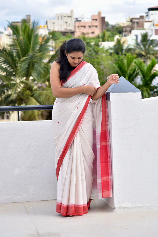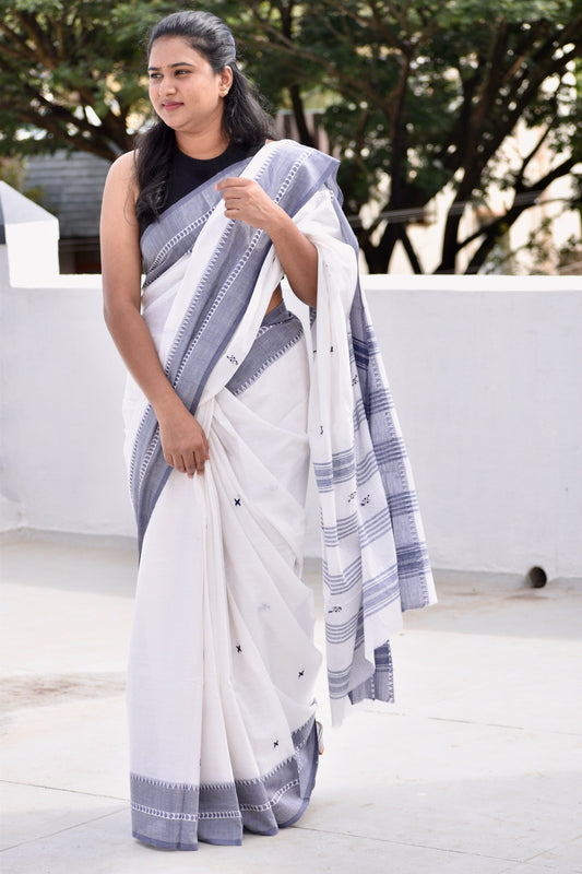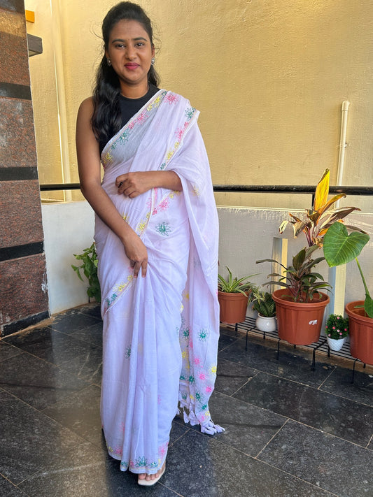 OFF WHITE HAND EMBROIDERED MUL SAREE