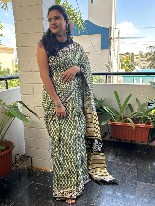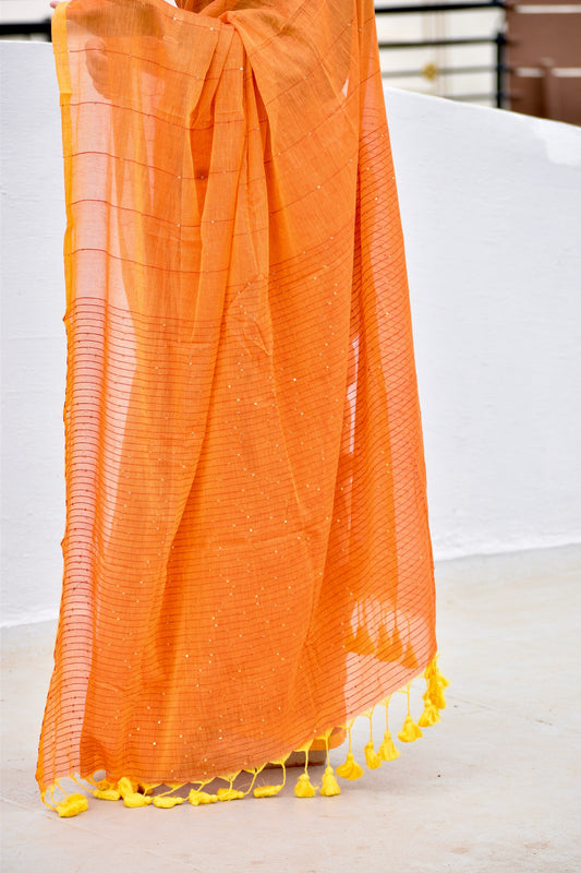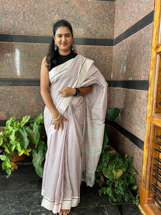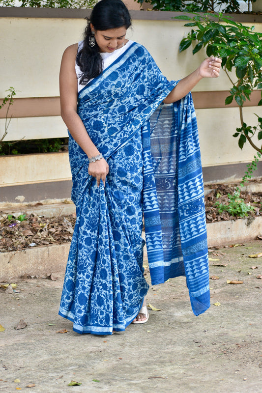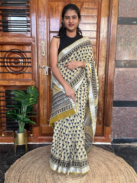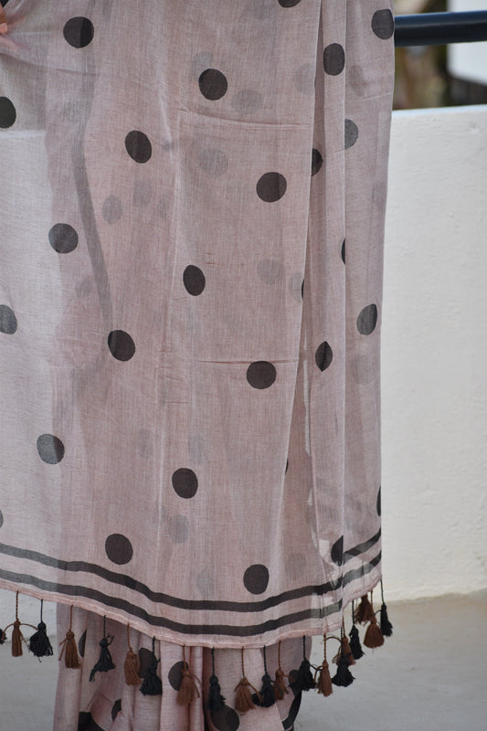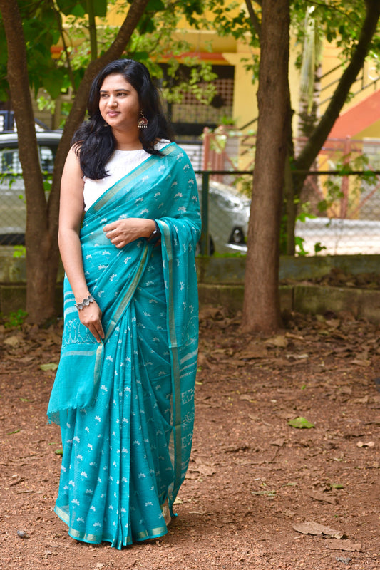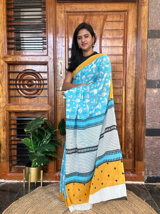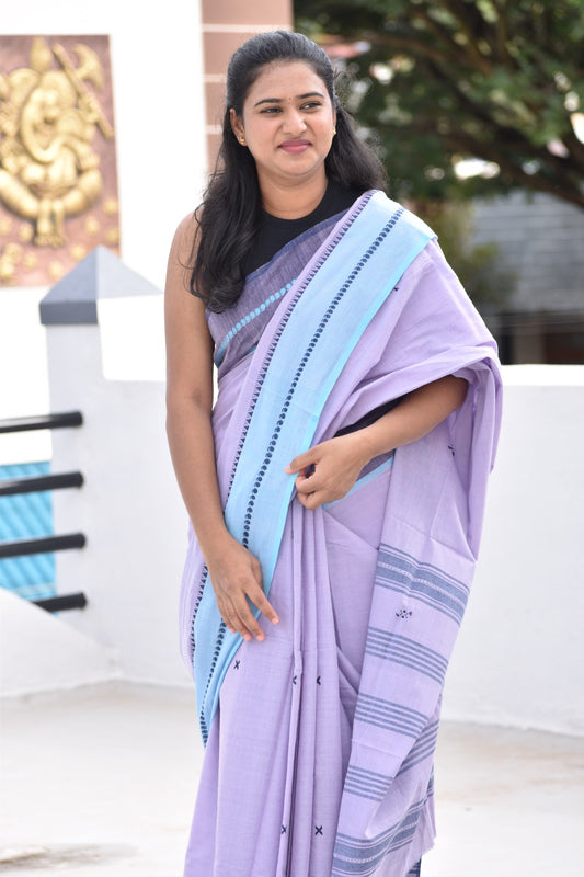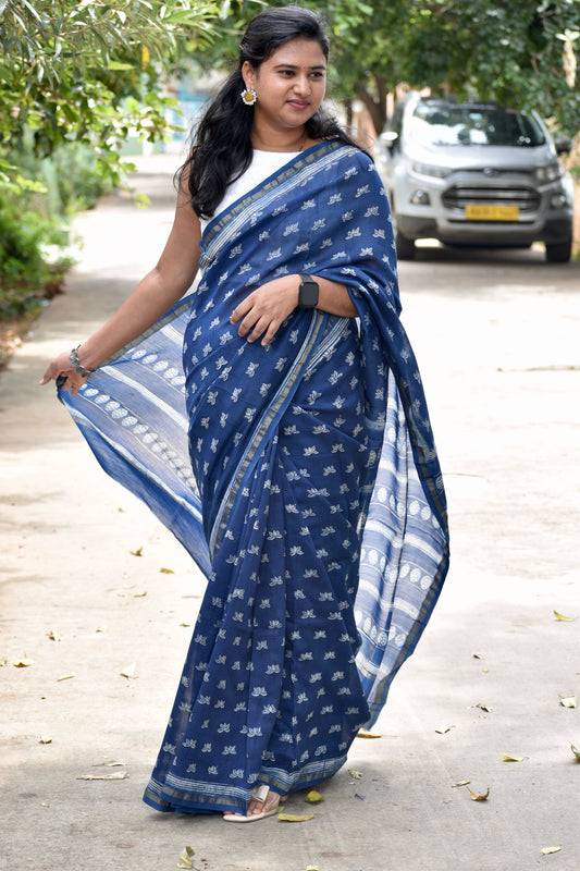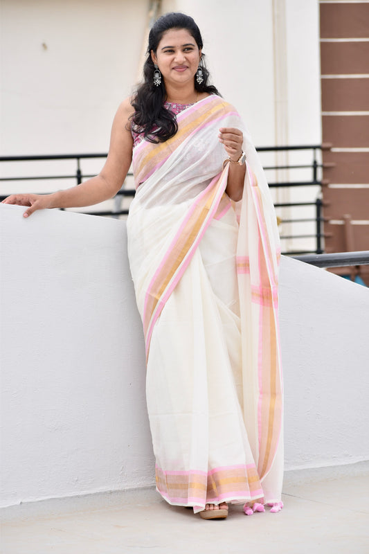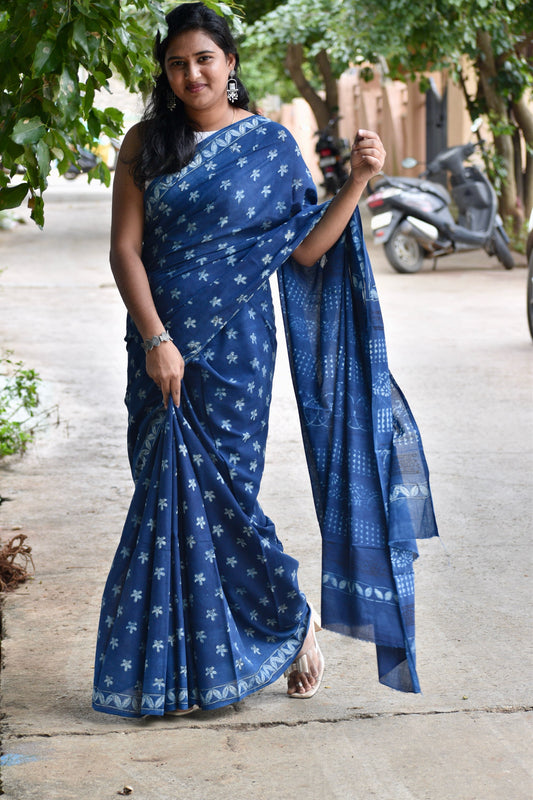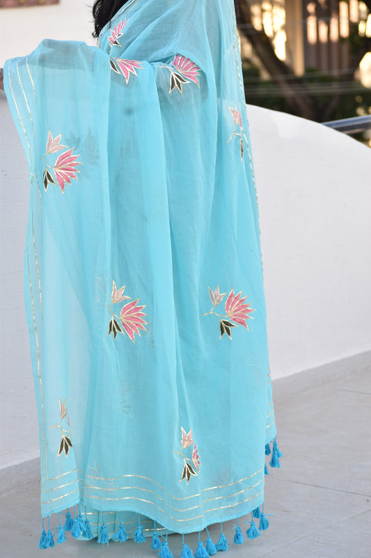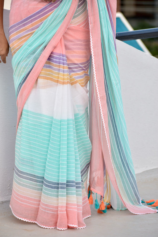 OFF WHITE HAND EMBROIDERED MUL SAREE