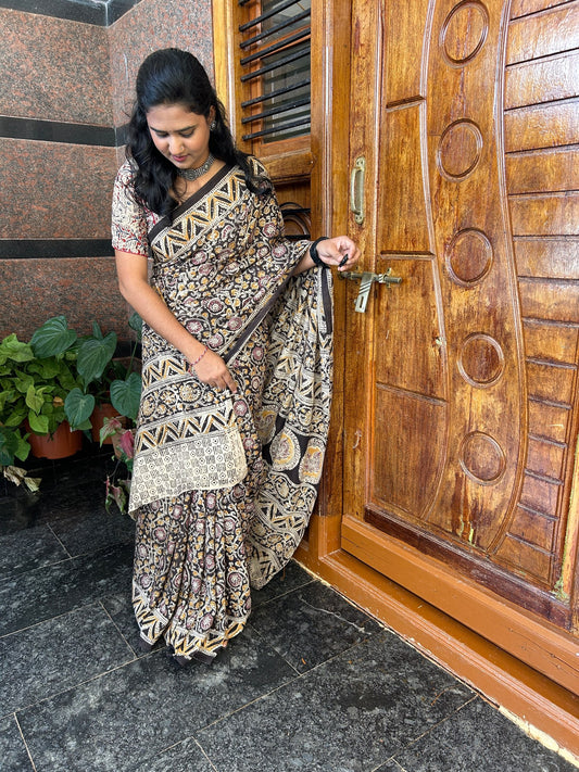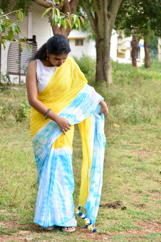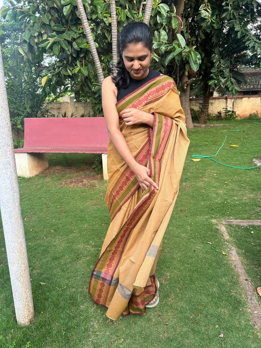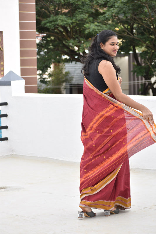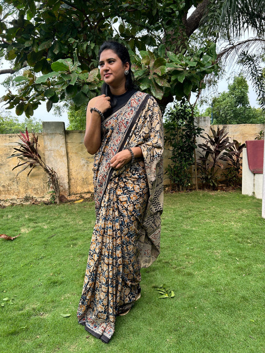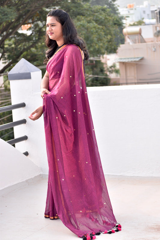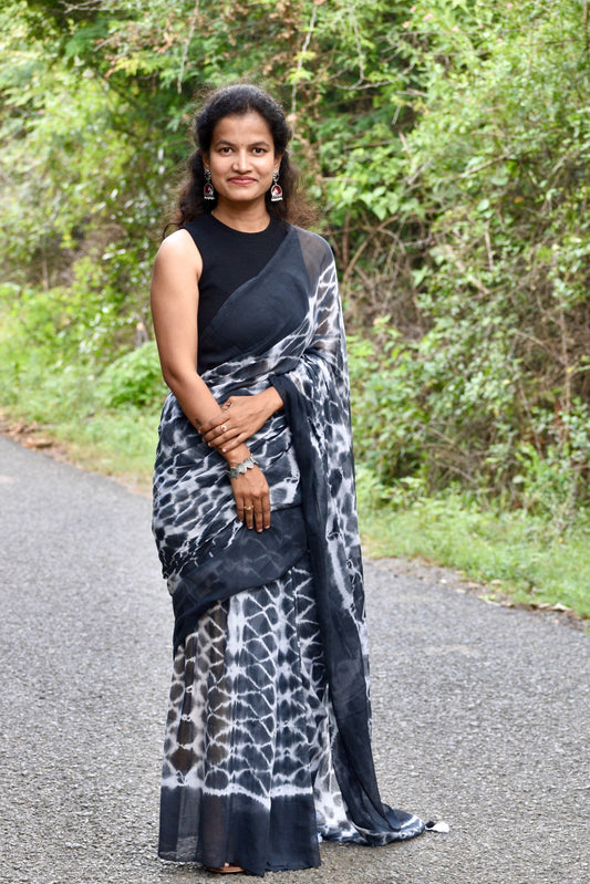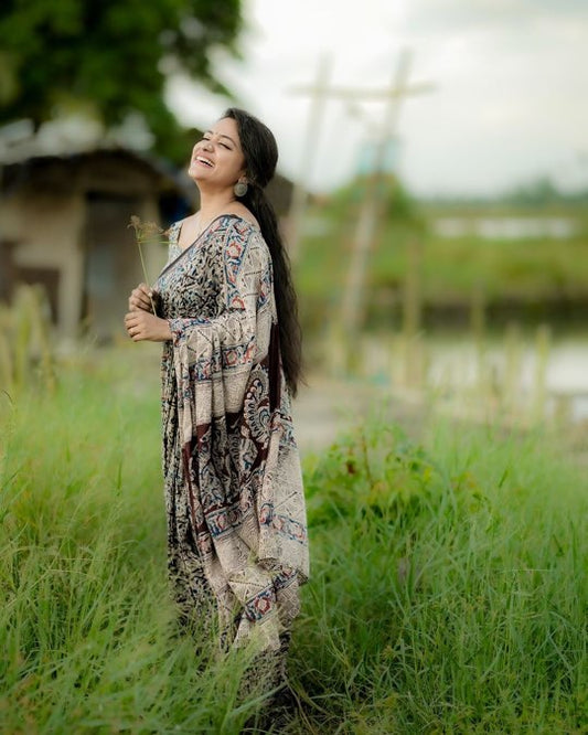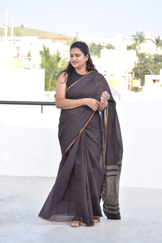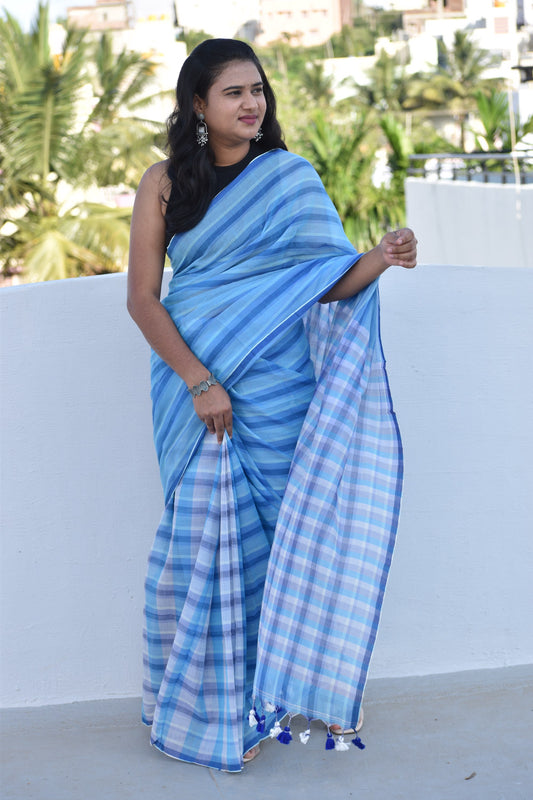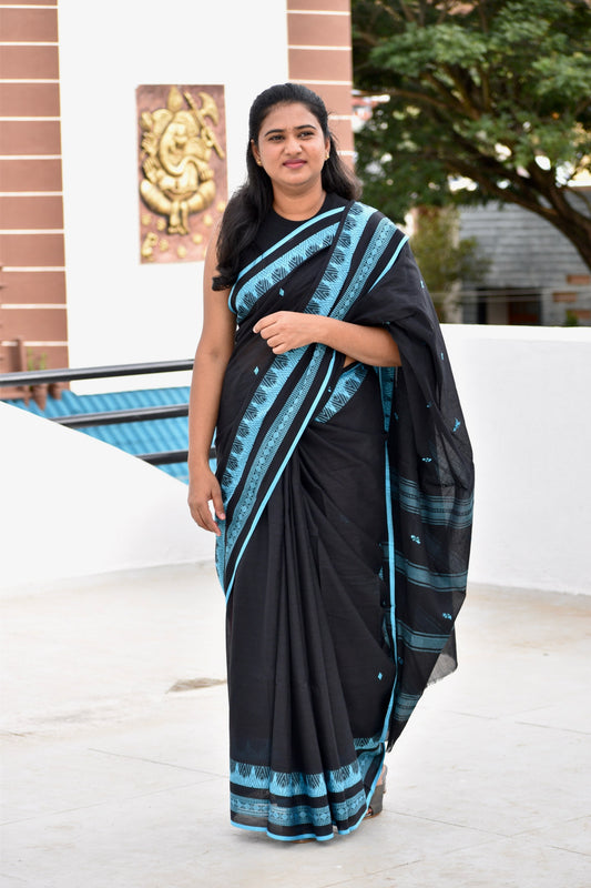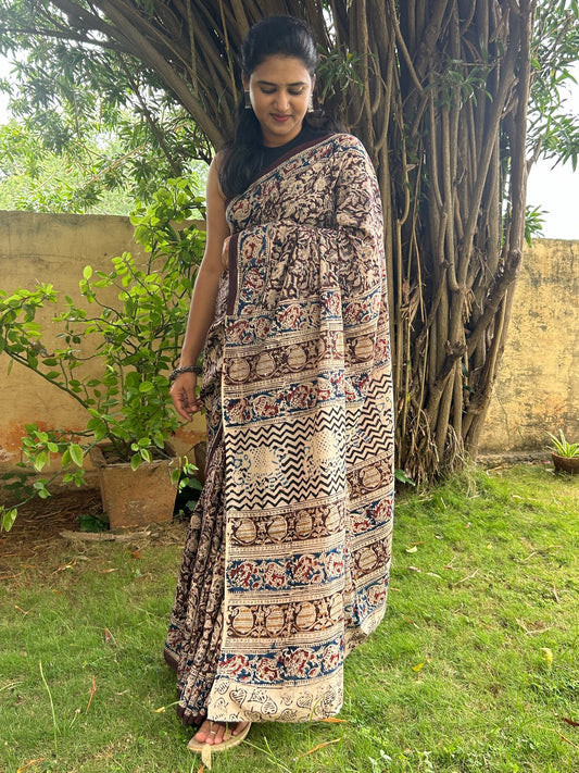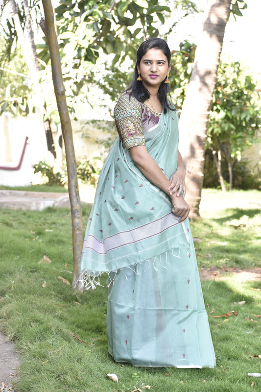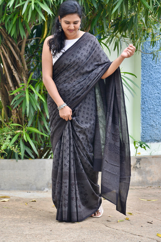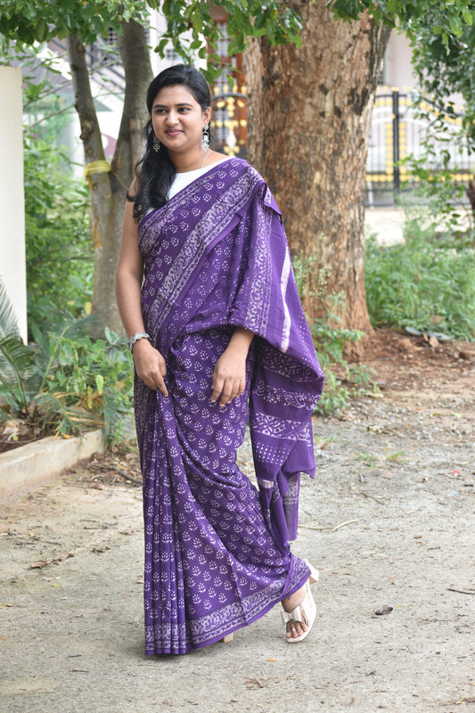 OFF WHITE HAND EMBROIDERED MUL SAREE