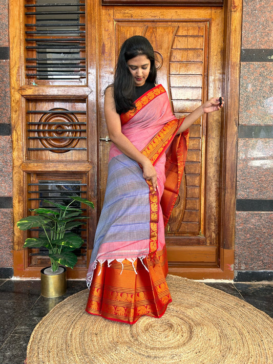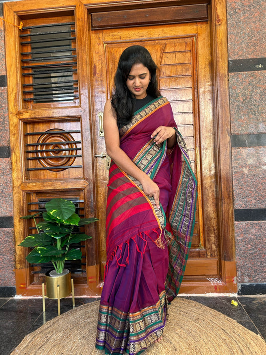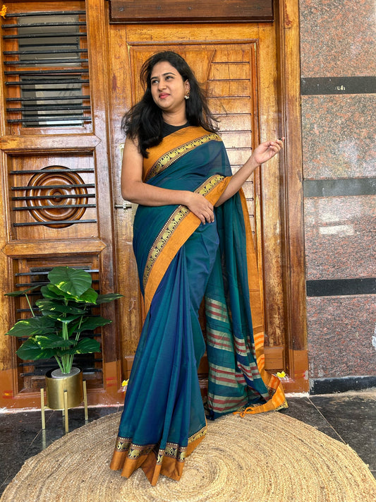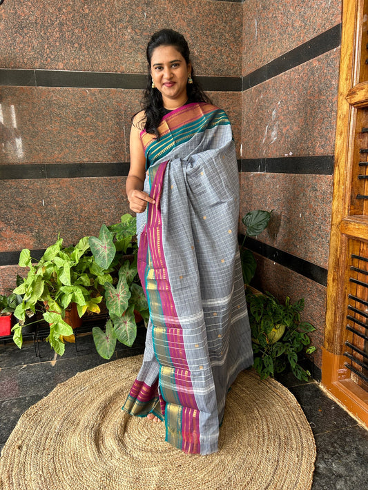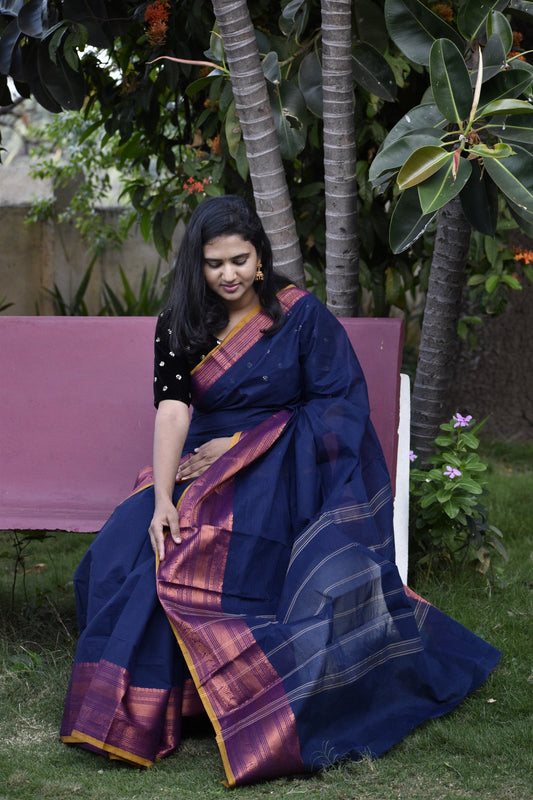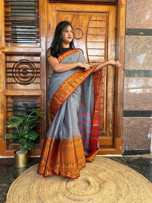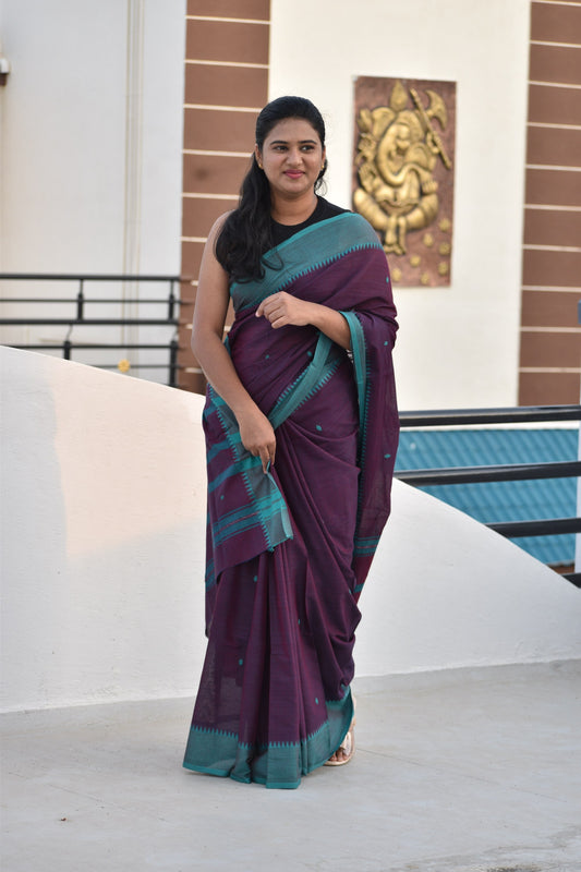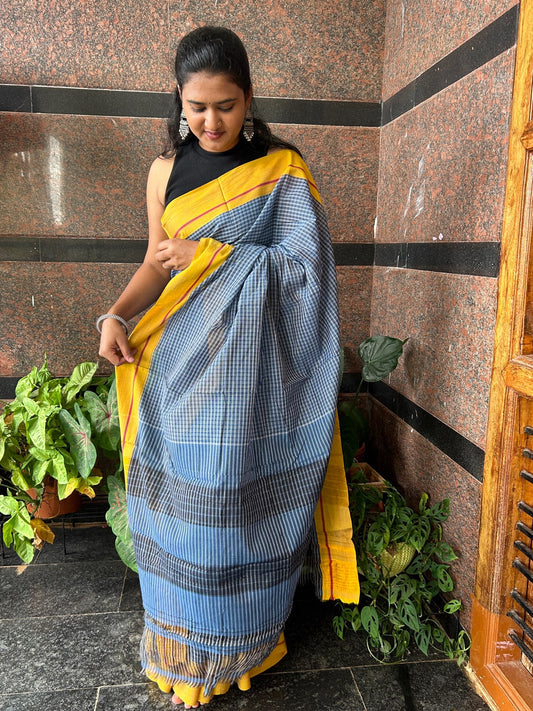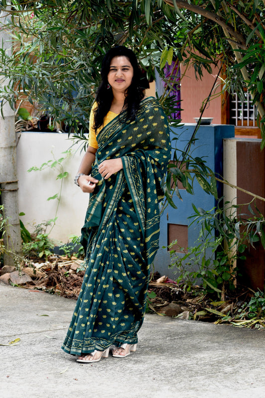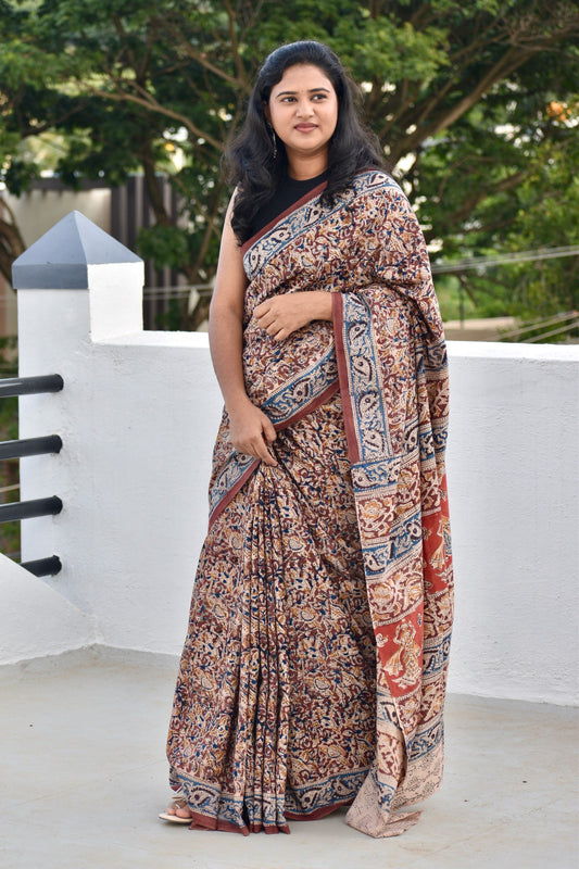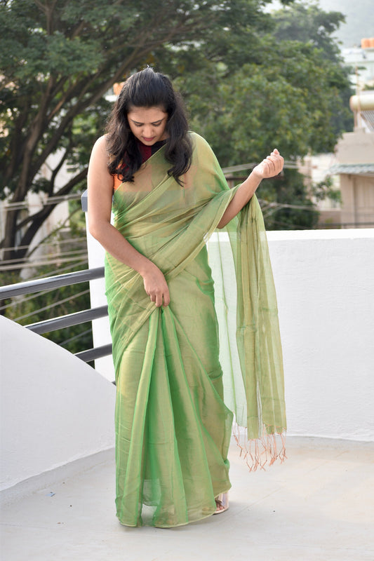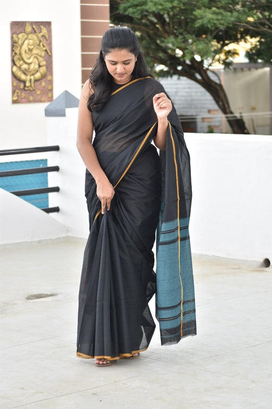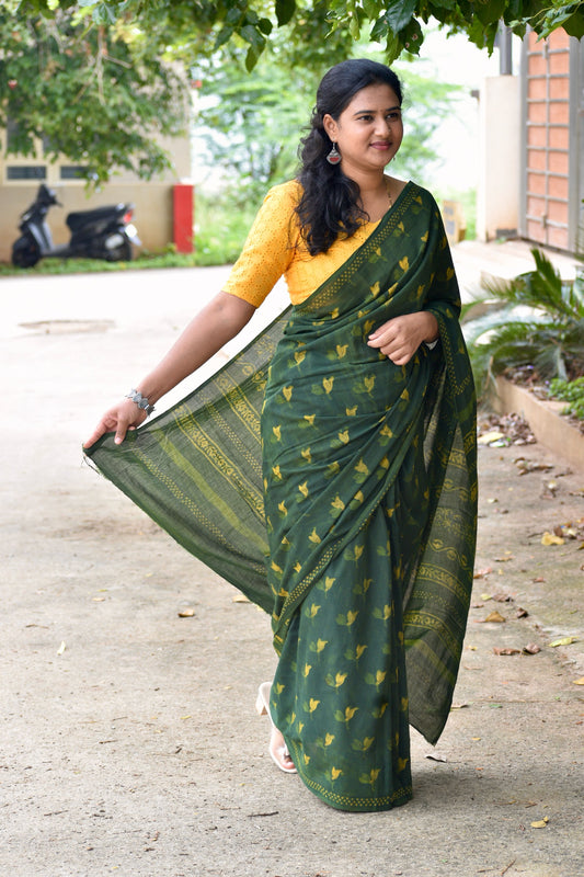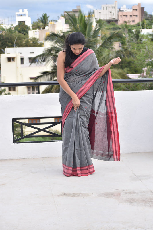 OFF WHITE HAND EMBROIDERED MUL SAREE