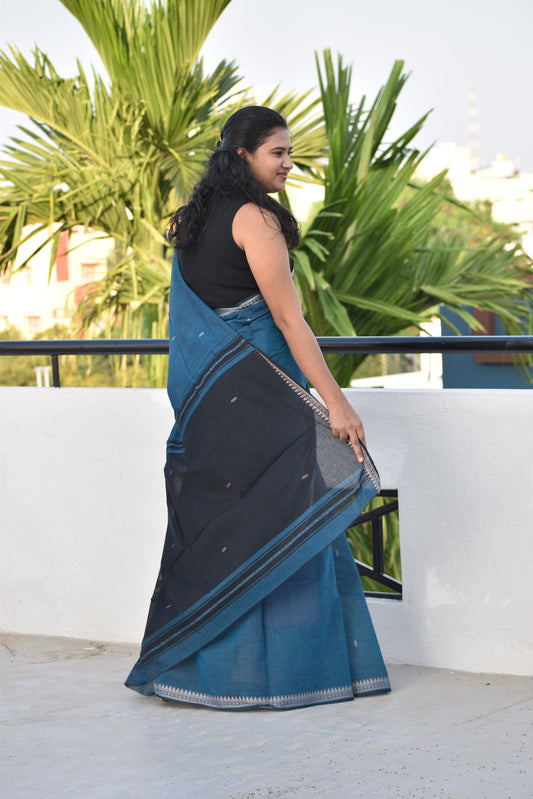 OFF WHITE HAND EMBROIDERED MUL SAREE