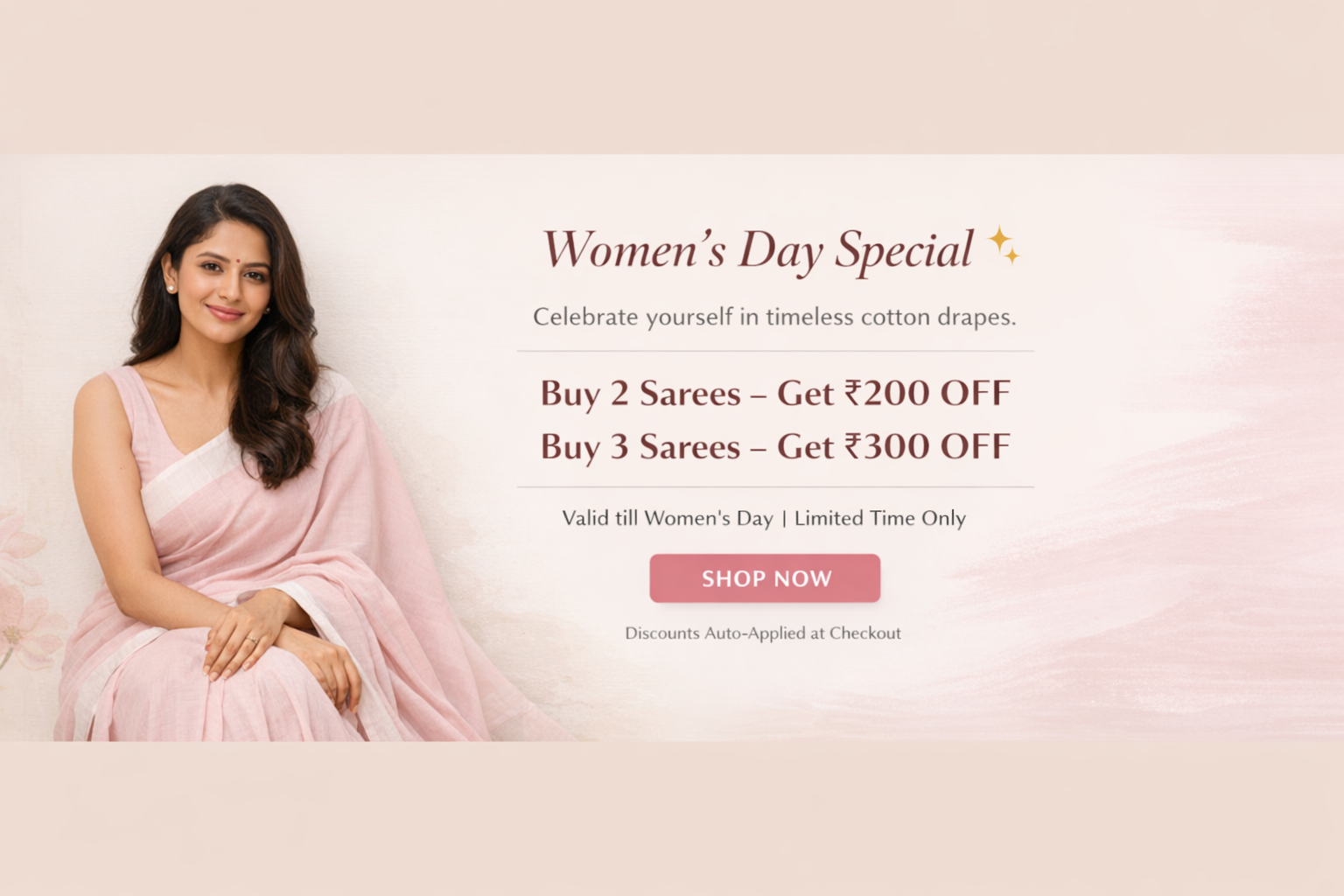 SalePINK LINEN SAREE