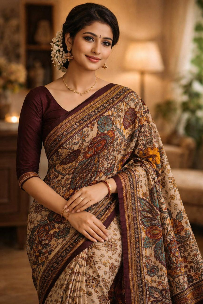 Brown kalamkari mul saree