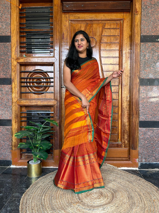 ORANGE HANDLOOM ILKAL SAREE.