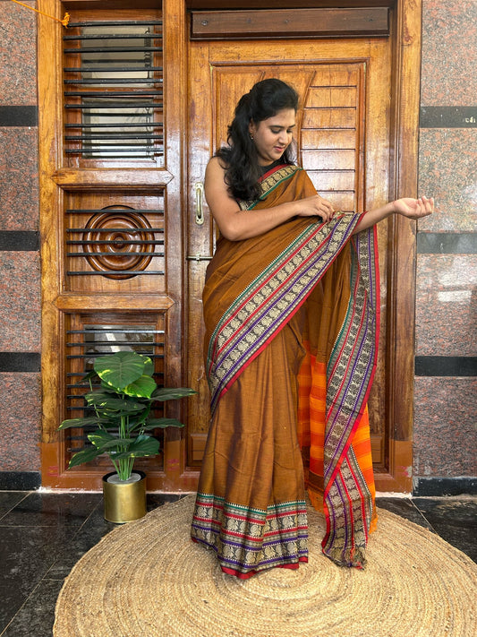 Rust orange Narayanpet saree.